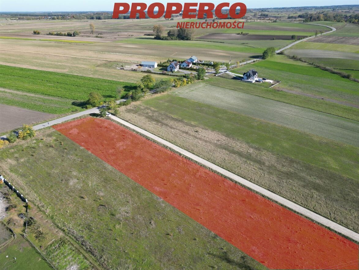For sale: A plot of land measuring 7312m2 located in Stawiany, Kije municipality, Pińczów County. The land has approximate dimensions of 26x9x261x20x270m and is accessible by an asphalt road.